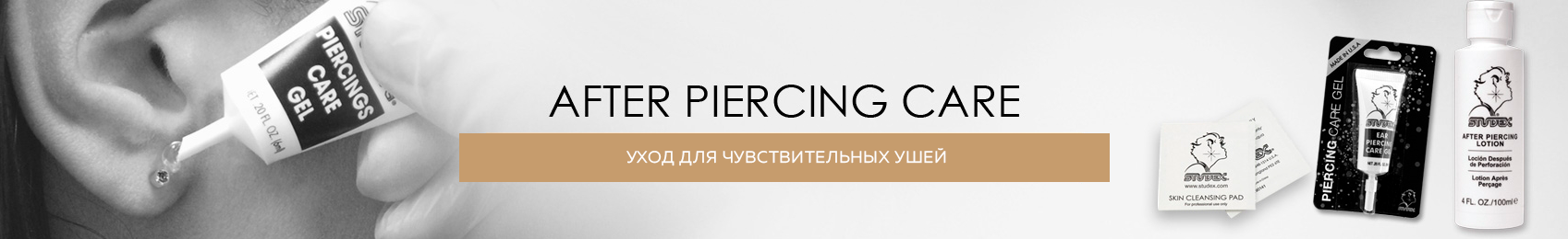 Предлагаем Вашему вниманию универсальные продукты компании STUDEX: Лосьон по уходу после прокола, Гель для заживления и Капли. Эти средства будут защищать Ваши уши от воспаления и различного рода инфекций.